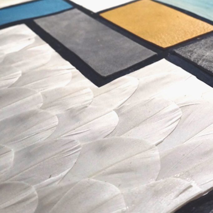Dans l’univers de la décoration et de l’art, la plume quitte le vêtement pour devenir matière à rêverie. Installée en suspension, intégrée à des objets ou mise en scène dans des tableaux, elle introduit un souffle de nature et d’inattendu. Tantôt graphique, tantôt aérienne, elle dialogue avec les textures et les volumes, transformant les espaces en lieux sensibles et singuliers.
